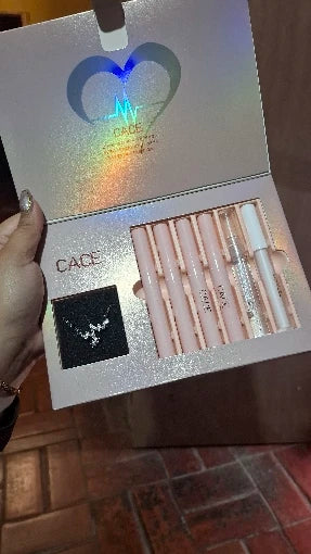 Unlike others, our set offers vibrant colors, a moisturizing lip cream, and a stylish necklace, ensuring both beauty and comfort.